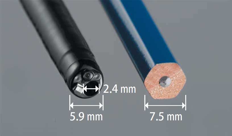 This ultra slim gastroscope with a distal end diameter of 5.8 mm is expected to be useful for narrow GI anatomy and for cases featuring stenosis. The slim distal end also supports a soft transnasal insertion and off ers a potential to alleviate patients’ discomfort.