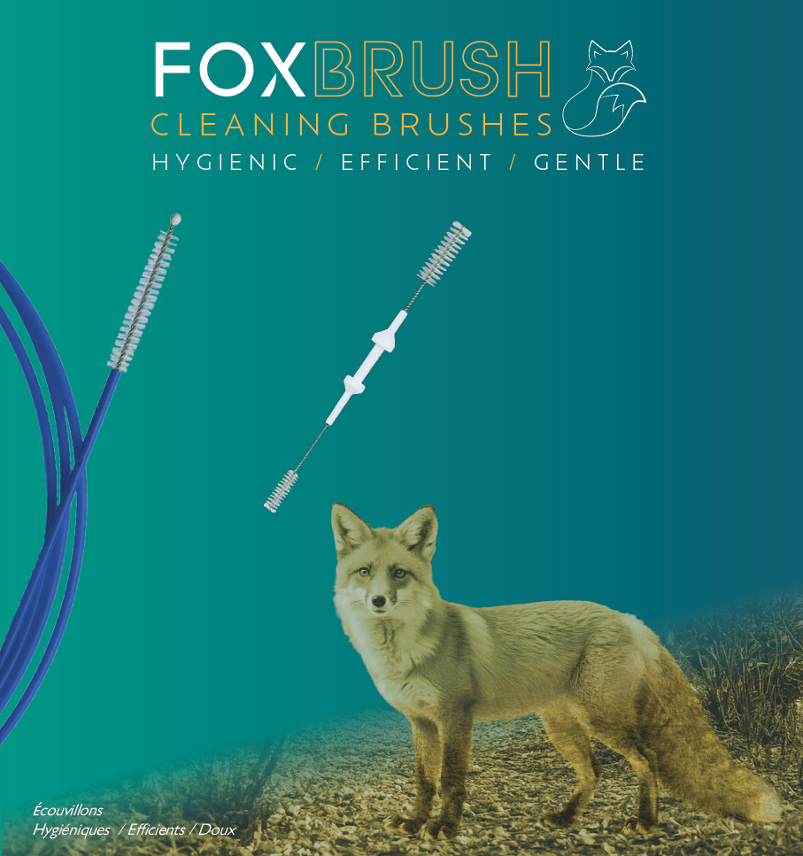 Single, double, and triple head brushes, several diameters, to fit with all types of endoscopes. Available individually or as a set with a valve cleaning brush. Single-use brushes.