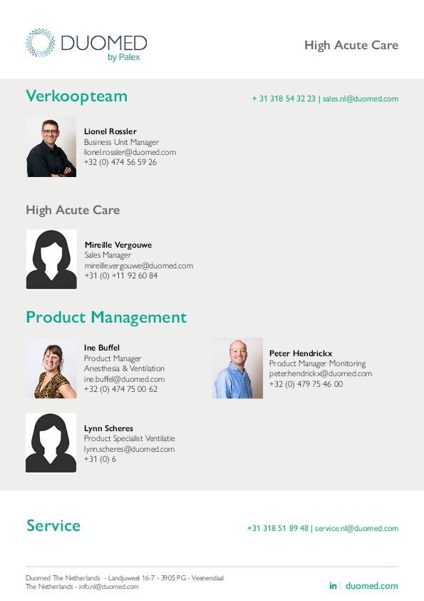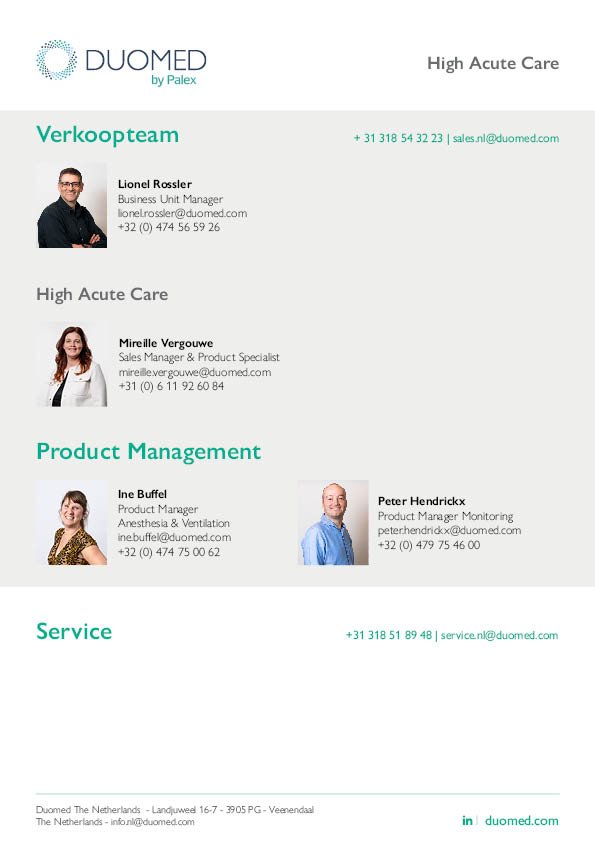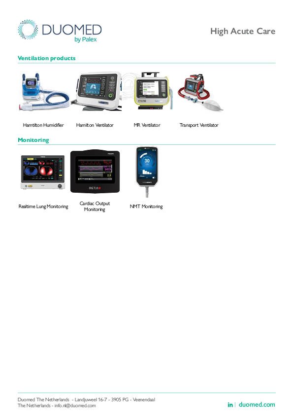 Back High Acute Care Range - Duomed NL VENTILATION TOMOGRAPHY COMFORT CARE THERMOREGULATION Contact us about this product Documents NLD HAC Portfolio 2026