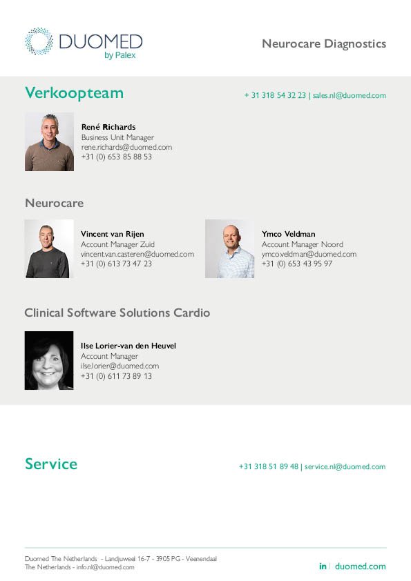 Back NeuroCare Diagnostics Range Duomed NL NeuroCare EquipmentNeuroCare AccessoriesClinical Software Solutions Contact us about this product Documents NLD DIA Portfolio 2026 Related products Endoscopy Range Duomed NL Endoscopy, ETI, Ultrasound Show product info Technical Service - Excellence in Service Duomed NL Our technical service department is responsible for the installation, repairs and maintenance of your products. Show product info Abdominal & Vascular Surgery Range Duomed NL Abdominal & Vascular Surgery Show product info Urology Gynaecology Plastic Surgery Range Duomed NL Urology, Gynaecology & Plastic Surgery Show product info