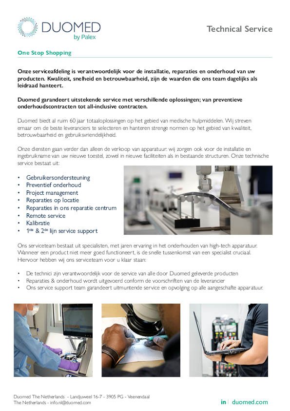 Technical Service - Excellence in Service Duomed NL
