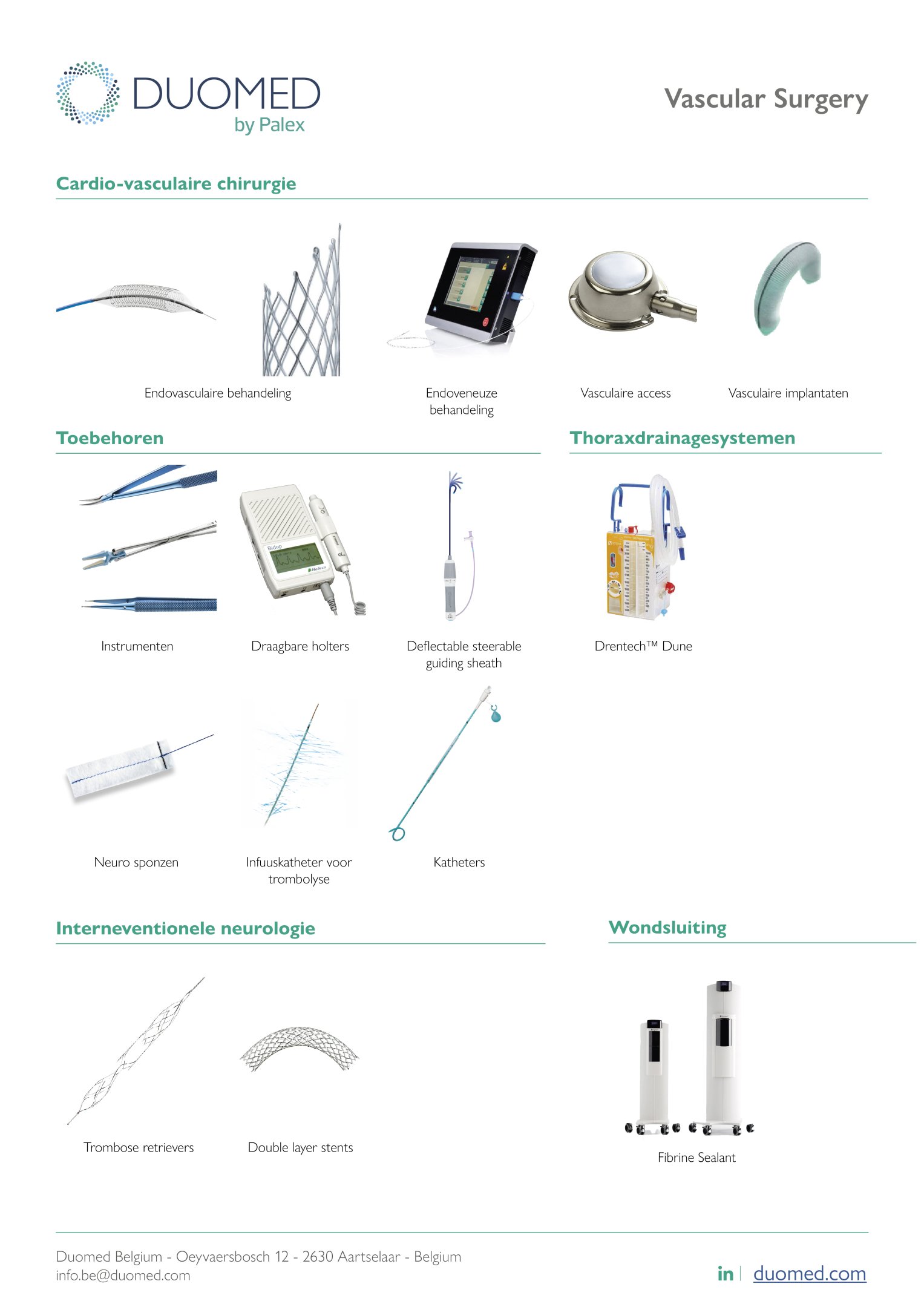 Terug VAS - Vascular Surgery Cardiovasculaire chirurgieNeuro-interventiesAccessoires Neem contact met ons op over dit product Documents VAS - Vascular - Portfolio 2026 - NL Gerelateerde producten IMA - Imaging Chirurgie Endoscopie Radiologie Toon productinfo CSS - Clinical Software Solutions We bieden hoogwaardige klinische softwareoplossingen aan. Toon productinfo IPS - Infection Prevention & Sterilization Hygiëne, Sterilisatie, Bescherming van medisch personeel & accessoires Toon productinfo ABDO - Abdominal Surgery Laparoscopische oplossingen Hernia-oplossingen Proctologie-oplossingen Robotchirurgie Toon productinfo