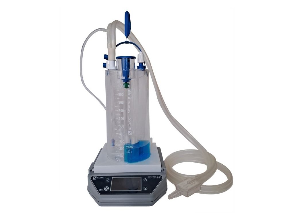 Deze draagbare vacuümunit kan worden gebruikt in combinatie met 3 verschillende wegwerpproducten: Simply (capaciteit van 1200 ml), miniSimply (capaciteit van 400 ml), Simple Silver (capaciteit van 2000 ml) en twee verschillende bilume-patiëntslangen die een directe intrapleurale drukmeting mogelijk maken.